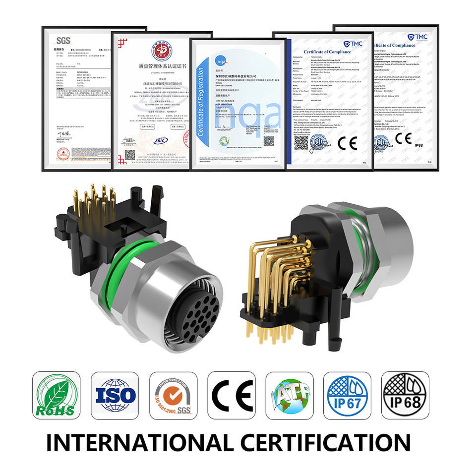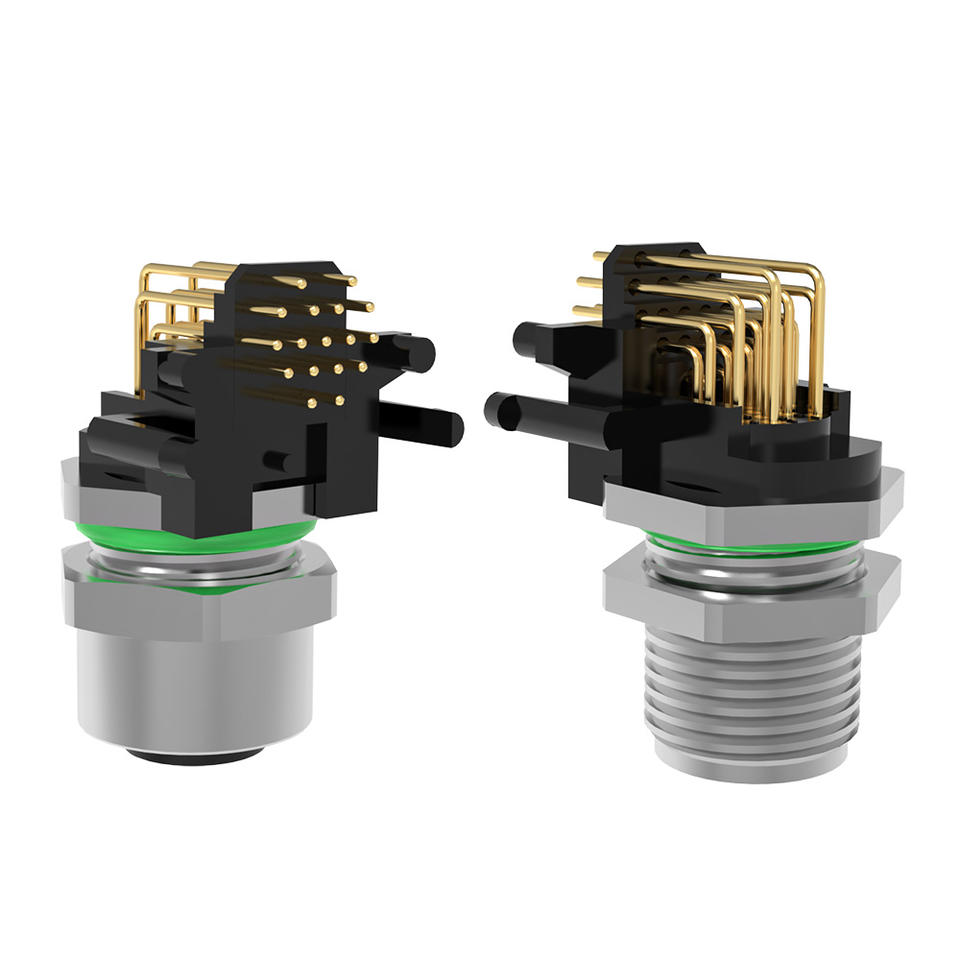 เต้ารับติดแผง M12พร้อมขายึด IP67กันน้ำ90องศา17พินสำหรับขั้วต่อทางอุตสาหกรรม