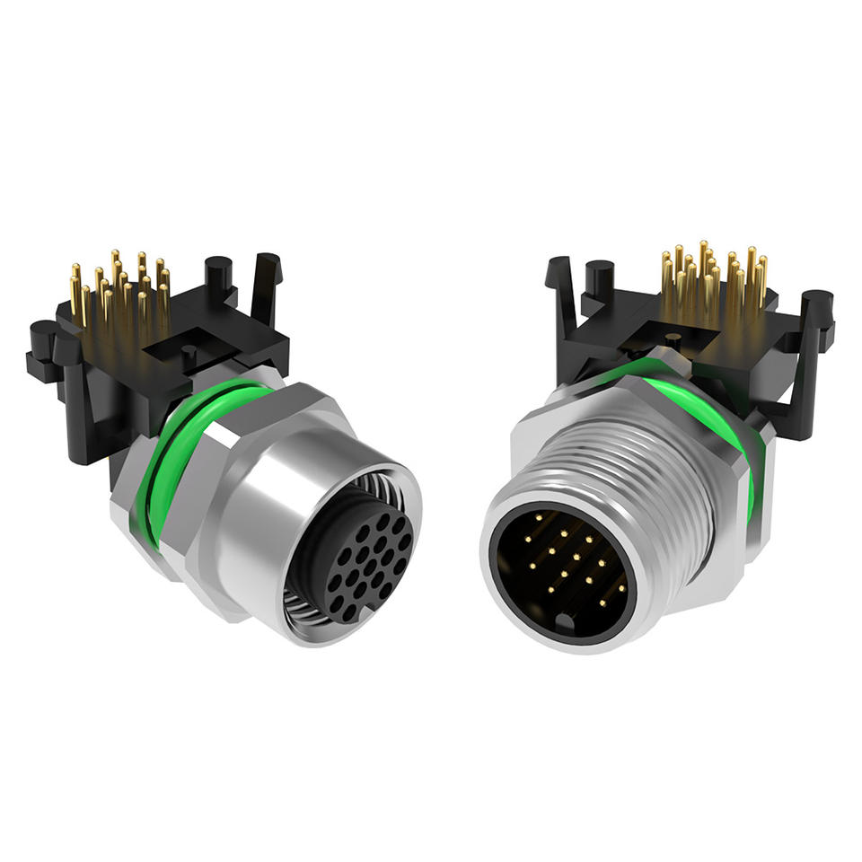 M12 Panel Mount Socket with Bracket 90 Degree 17 Pin