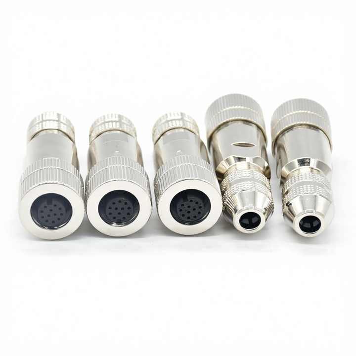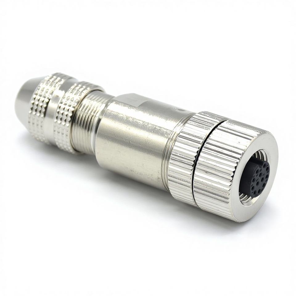 ขั้วต่อ M12 คุณภาพสูง รหัส A ตัวเมียโลหะ 12 ขา แบบวงกลม สำหรับงานอากาศยาน