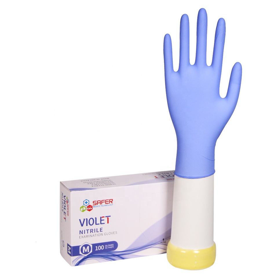 M3.5 ODM ถุงมือไนไตรล์แบบใช้แล้วทิ้งนุ่มสบายทนต่อการเจาะกันน้ำสีม่วงอ่อน500
