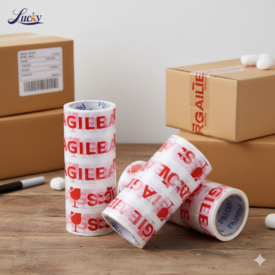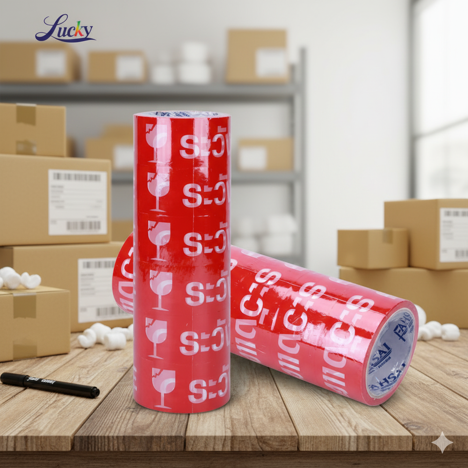 คุณภาพสูงผลิตในประเทศไทยเทปกาวพิมพ์สีแดงและสีขาวเทปเตือนกันน้ำสำหรับถุงปิดผนึก2นิ้ว * 45หลา