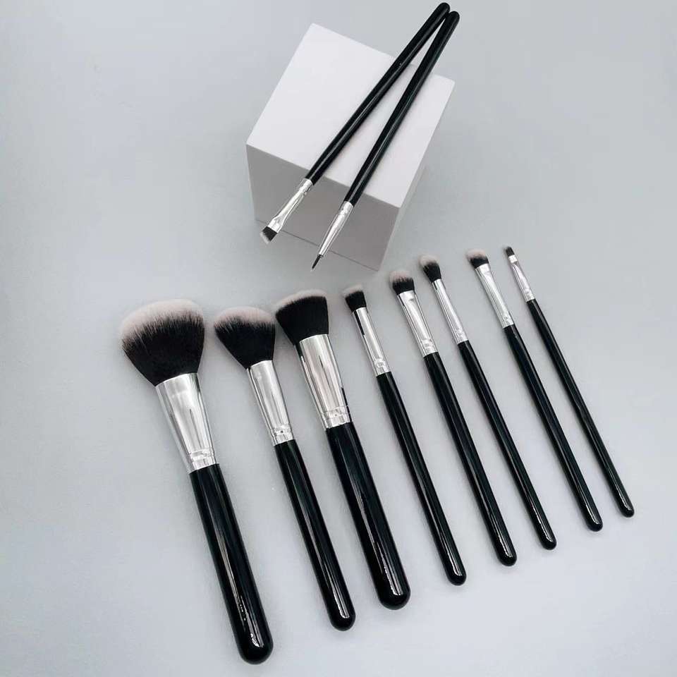ชุดแปรงแต่งหน้ามืออาชีพด้ามจับทำจากไม้ขนแปรงสังเคราะห์พร้อมแปรงพัดลมแบนคอนซีลเลอร์ปรับแต่งได้10ชิ้น