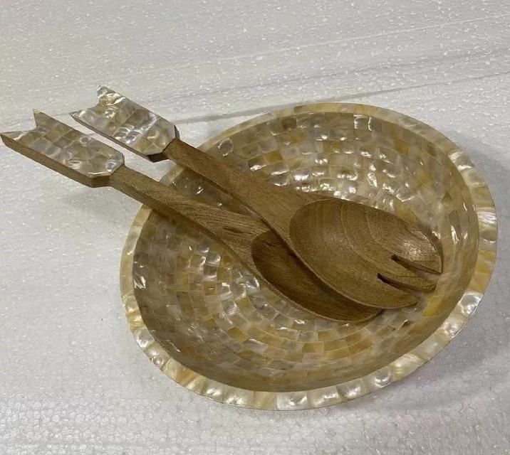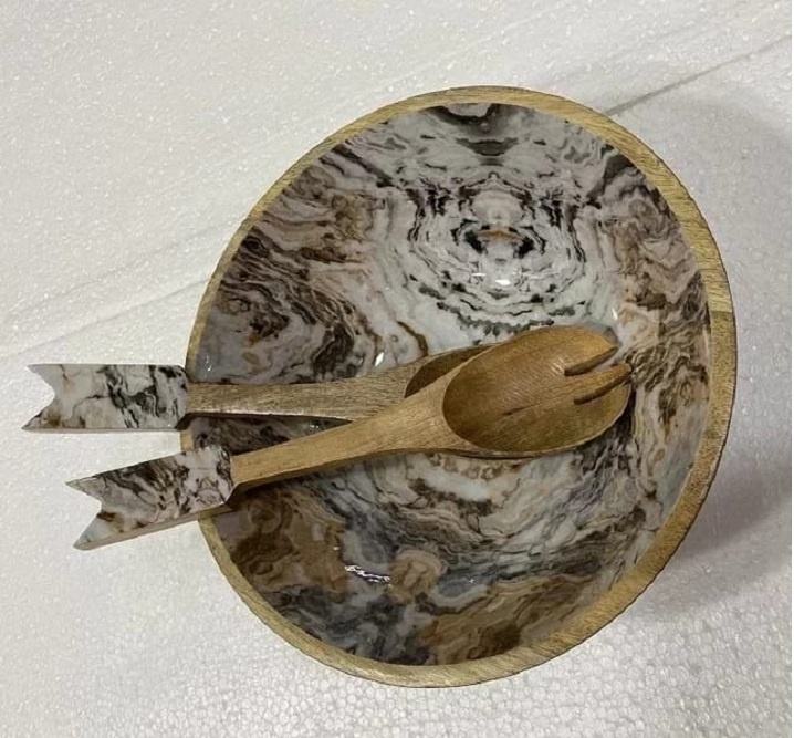 ชามสลัดสำหรับตกแต่งเครื่องครัวเครื่องครัวแบบแบนชามสลัดดีไซน์ภายในเคลือบด้วยไม้มะม่วง