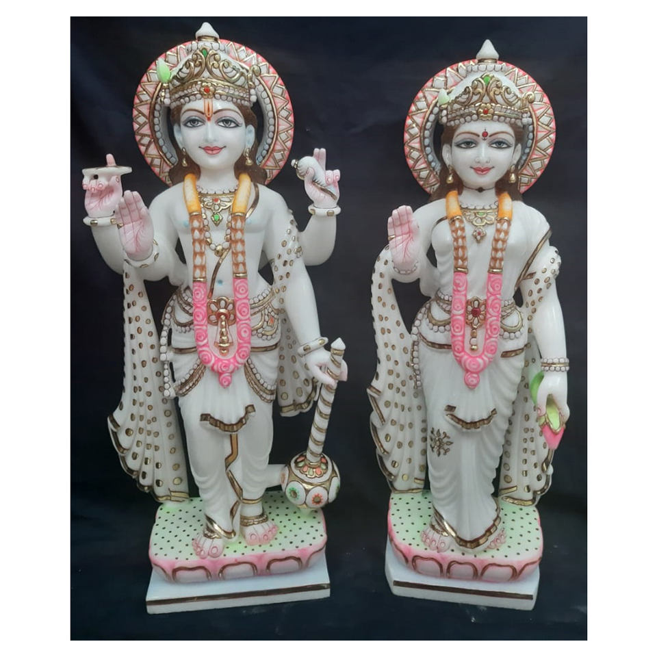 ชื่อสินค้า:รูปปั้นพระลักษมีวิษณุพระเจ้าและพระแม่คุณนายหินอ่อนคุณภาพสูง แบบยืน