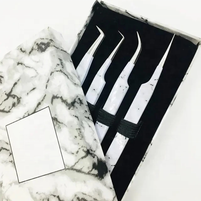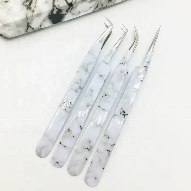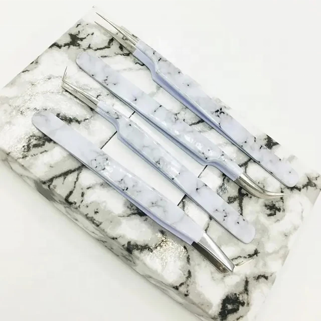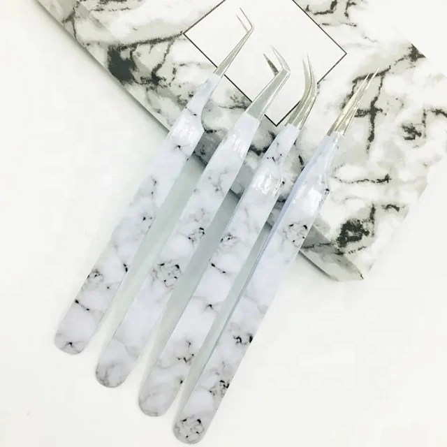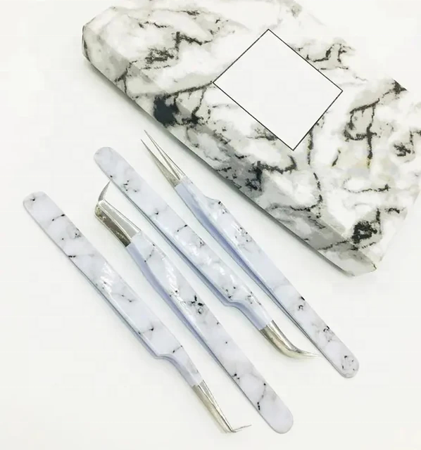 แหนบติดขนตาคุณภาพสูง พิมพ์ลายหินอ่อน ป้องกันแม่เหล็ก พร้อมโลโก้สั่งทำพิเศษ และโครงสร้างสแตนเลส