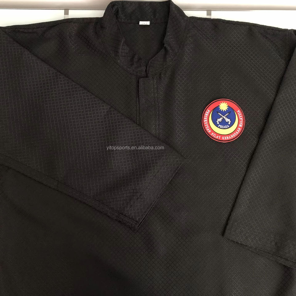 ชุดยูนิฟอร์มศิลปะการต่อสู้คุณภาพสูง สีน้ำเงิน ดำ ขาว สำหรับการแข่งขัน เพนคัค ซิลัต