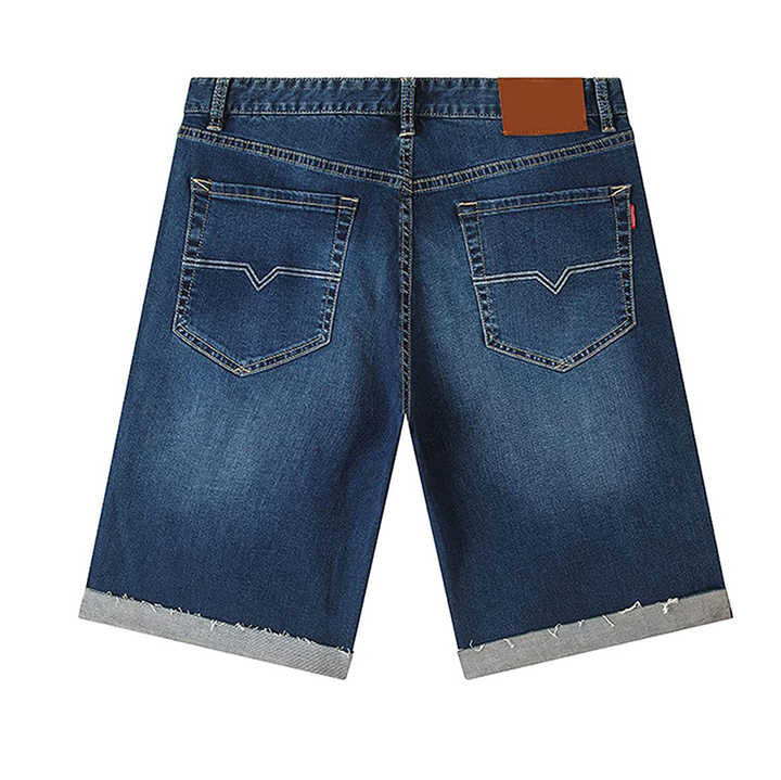 กางเกงยีนส์ขาสั้นผู้ชายคุณภาพสูง ผ้าฝ้ายแท้ ดีไซน์คลาสสิก สไตล์ลำลอง สำหรับฤดูร้อน ลายเรียบ มีกระเป๋า รุ่นใหม่