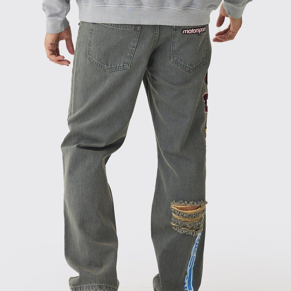 กางเกงยีนส์ของผู้ชายกางเกงลำลองพิมพ์โลโก้ตามสั่ง
