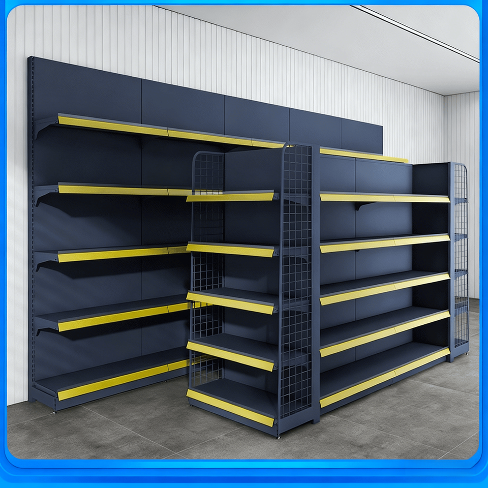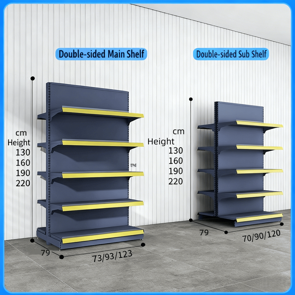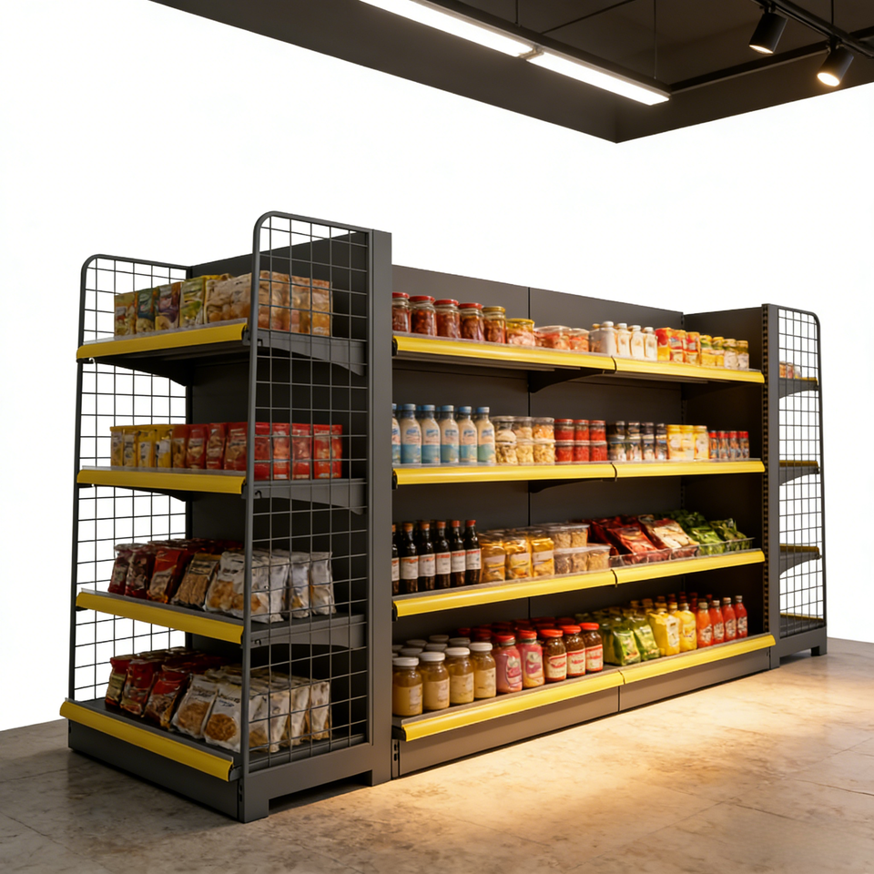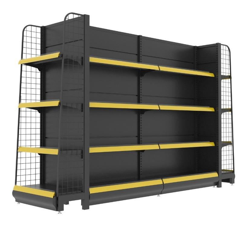 ชั้นวางสินค้าเหล็กคุณภาพสูง แบบสองด้าน สำหรับร้านขายของชำ ชั้นวางซุปเปอร์มาร์เก็ต