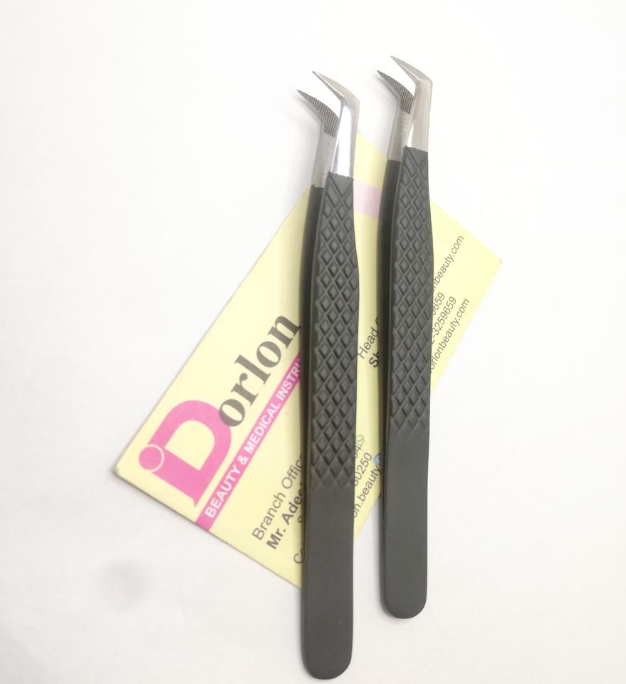 แหนบต่อขนตาปลายสแตนเลสแบบมีด้ามจับเพชรสีดำด้านคุณภาพสูง