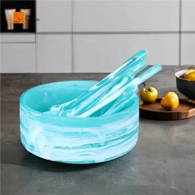 ชามเรซินสีฟ้าเคลือบด้านใช้สำหรับร้านอาหารของโรงแรมชามใส่ถั่วสลัดเสิร์ฟอาหารเย็นถ้วยเรซินคอลเลกชัน