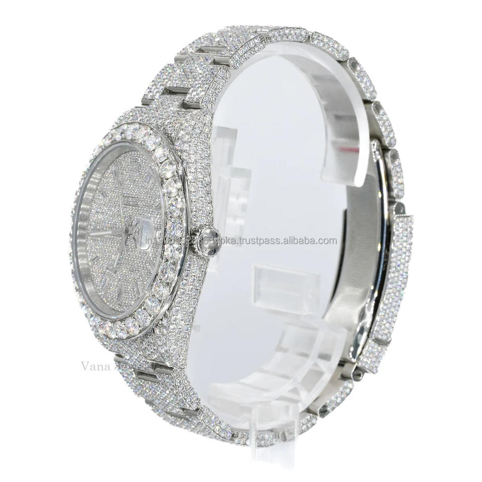 ตัวเรือนสแตนเลสสตีลคุณภาพสูง ประดับเพชร VVS มอยส์ซาไนต์ ระบบออโตเมติก กันน้ำได้ 100 บาร์ สไตล์ฮิปฮอปสำหรับผู้ชาย