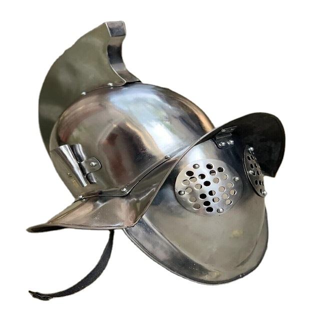 คุณภาพสูงยุคกลางโรมัน Gladiator หมวกกันน็อคโลโก้ที่กําหนดเองทองเหลืองชุบเทคนิคสมัยใหม่เกราะเครื่องประดับ