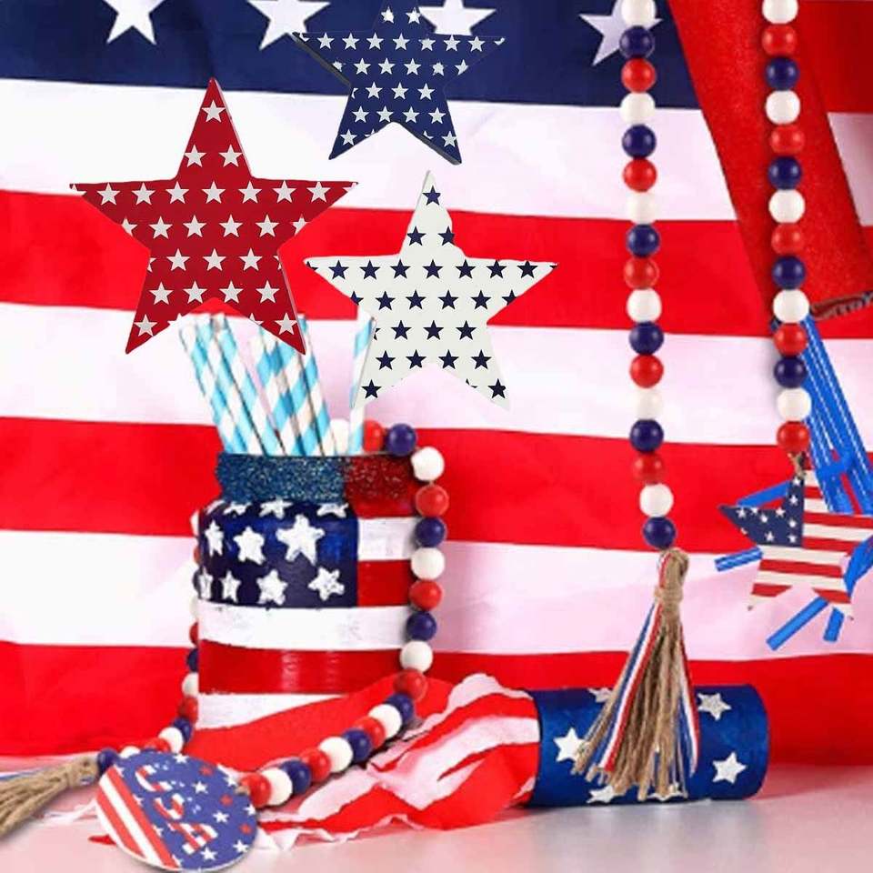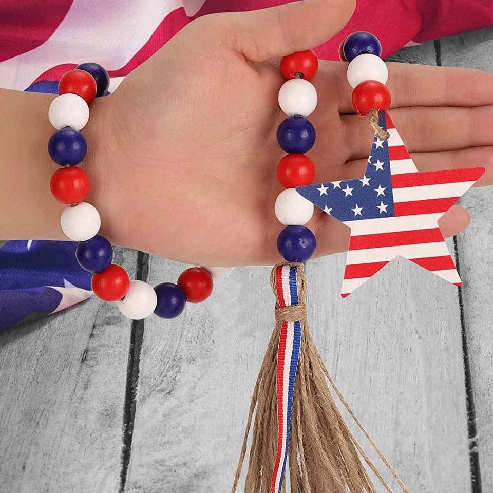 พวงมาลัยลูกปัดไม้รักชาติสำหรับตกแต่งวันรำลึกของตกแต่งแขวนผนัง