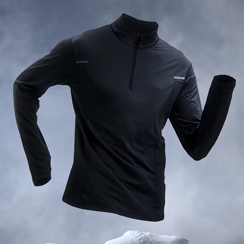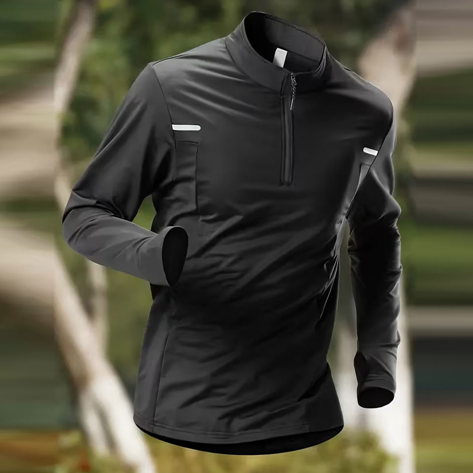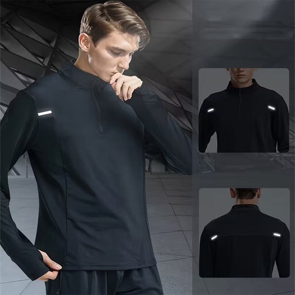 เสื้อยืดแขนยาวคอตั้งซิป 3/4 คุณภาพสูงสำหรับผู้ชาย ทรงปกติ ผ้าโพลีเอสเตอร์ เป็นมิตรกับสิ่งแวดล้อม ป้องกันรอยยับ สวมใส่สบายๆ
