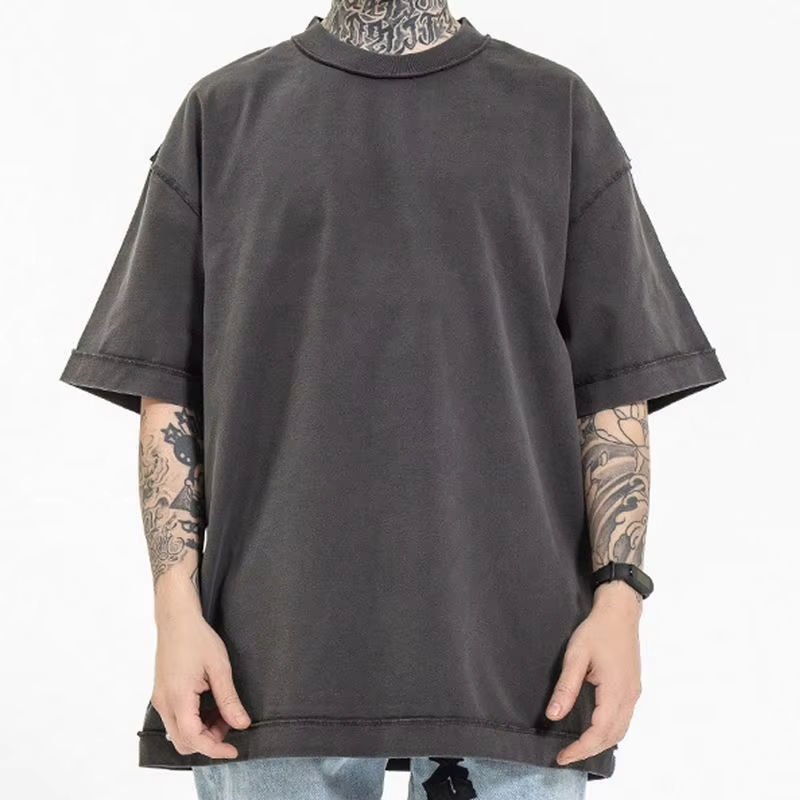 เสื้อยืดผู้ชายคุณภาพสูง ล้างสีแบบแอซิด สไตล์ลำลองแนวสตรีท แฟชั่นใส่ได้ทุกวัน ผ้าฝ้าย 100% แห้งเร็ว น้ำหนักเบา ระบายอากาศดี สัมผัสนุ่ม