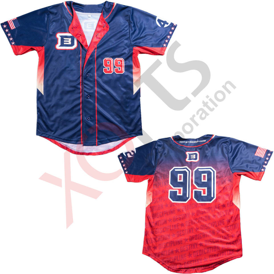 เสื้อเจอร์ซี่เบสบอลสำหรับผู้ชาย,เสื้อเจอร์ซีย์พิมพ์ลายธง USA สีน้ำเงินสีขาวสั่งเบสบอลได้ตามต้องการ