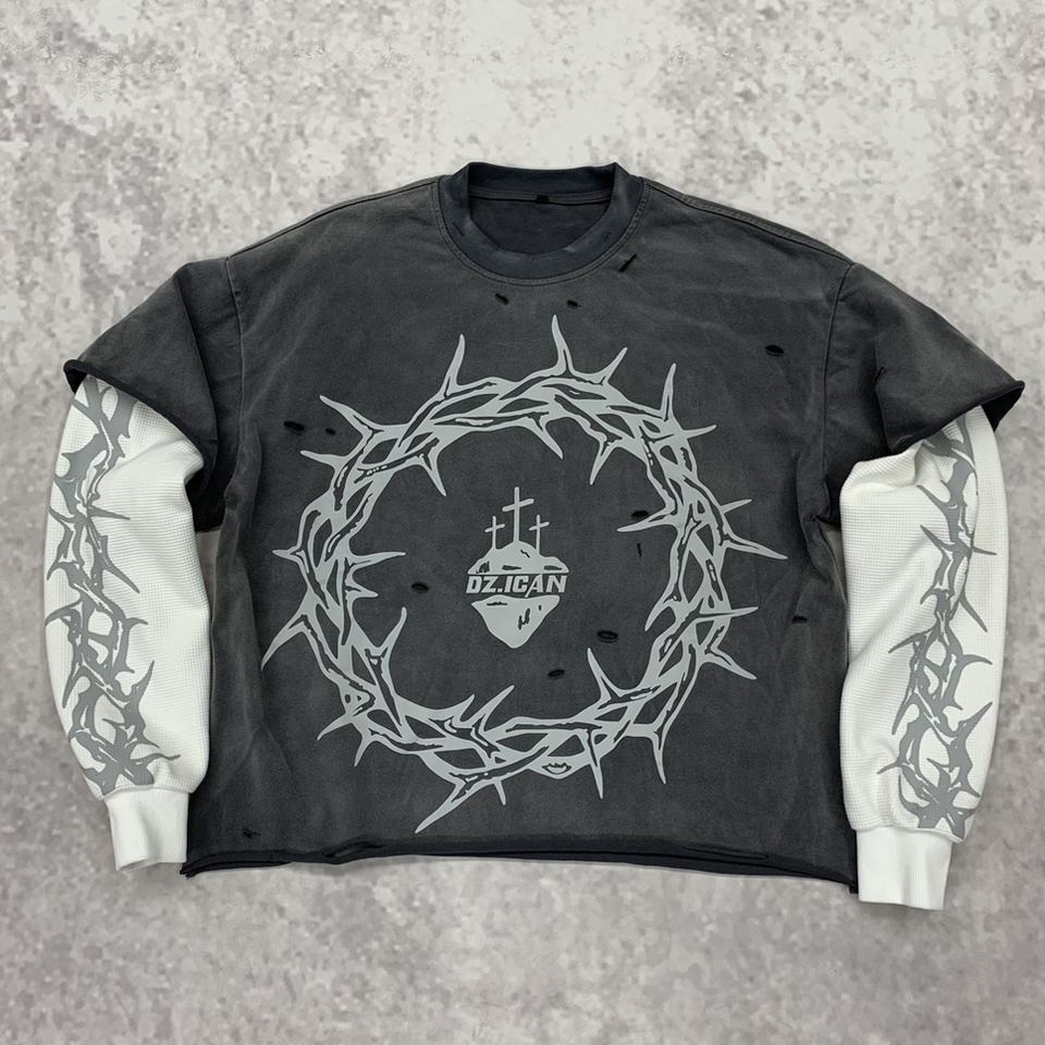 เสื้อยืดแขนยาวสำหรับผู้ชายเสื้อยืดครอปของผู้ชายเสื้อยืดพิมพ์ลายกราฟิกขนาดใหญ่กว่าไซส์วินเทจซักกรด