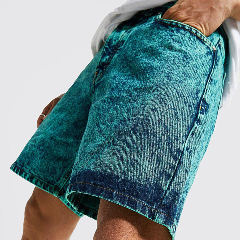 กางเกงยีนส์ขาสั้นทรงหลวมคุณภาพสูงสำหรับผู้ชาย สไตล์ลำลอง ล้างสีแบบแอซิด ระบายอากาศได้ดี ทรงปกติ ความยาวระดับเข่า มีกระเป๋าคาร์โก้ ลดราคา