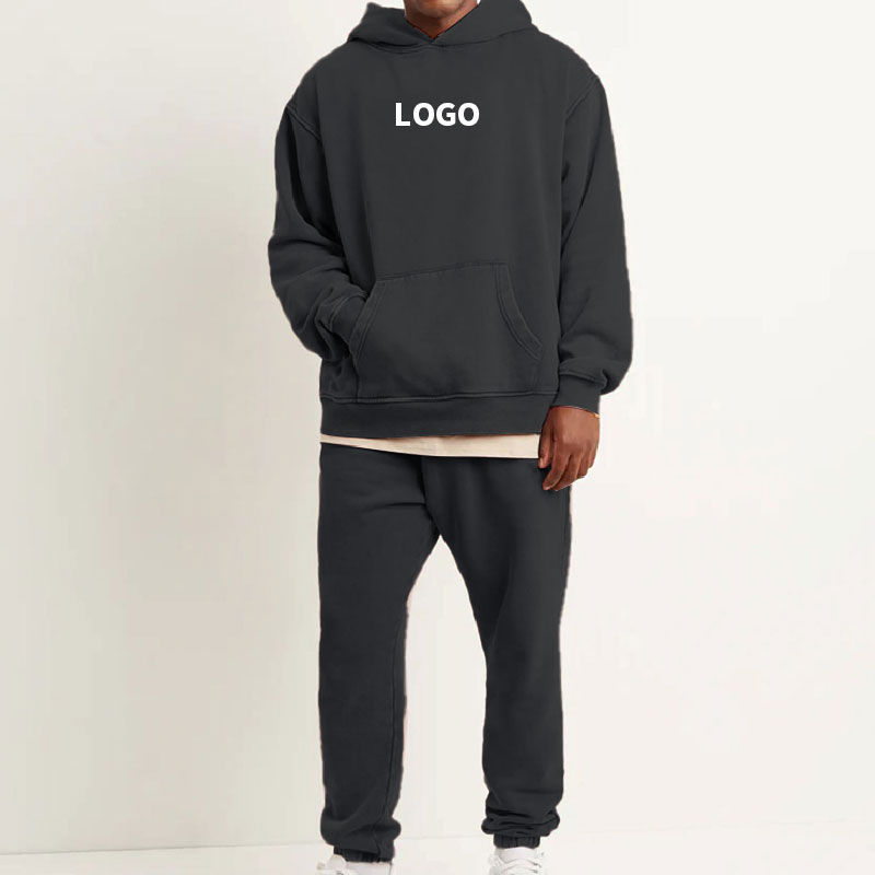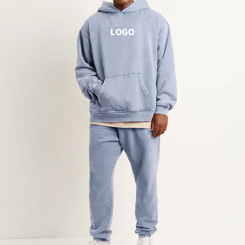 ชุดเซ็ตเสื้อฮู้ดดี้และกางเกงวอร์มผ้าฝ้ายคุณภาพสูงสำหรับผู้ชาย ลวดลายพิมพ์ลายแบบ Acid Wash พร้อมกางเกงจ็อกเกอร์ทรงบาน
