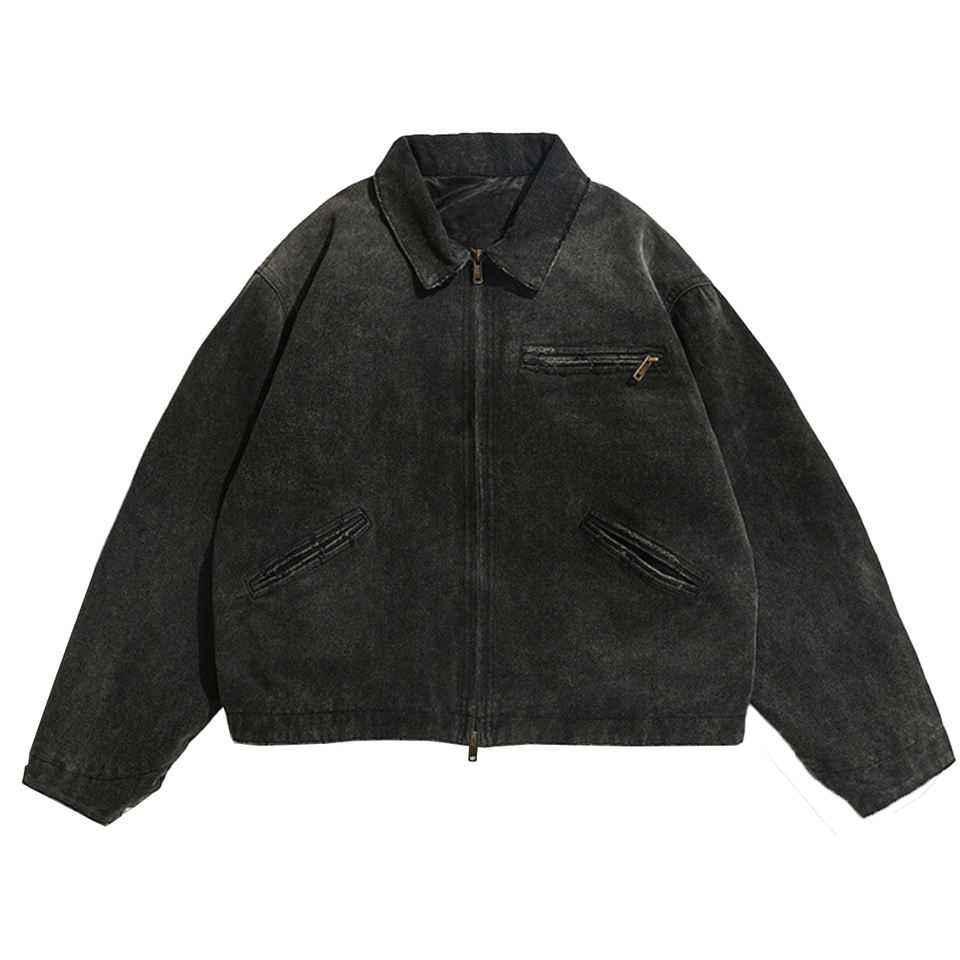 แจ็กเก็ตผ้ายีนส์สำหรับผู้ชายเสื้อแจ็กเก็ตผ้ายีนส์สีออกเป็นกรดวินเทจตามสั่ง