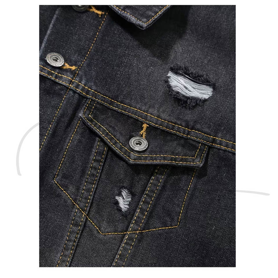 เสื้อแจ็คเก็ตยีนส์ผู้ชายคุณภาพสูง ทรงสวยทันสมัย ไซส์ปกติ ผลิตจากวัสดุคุณภาพดี เสื้อแจ็คเก็ตยีนส์คุณภาพเยี่ยมสำหรับผู้ชาย