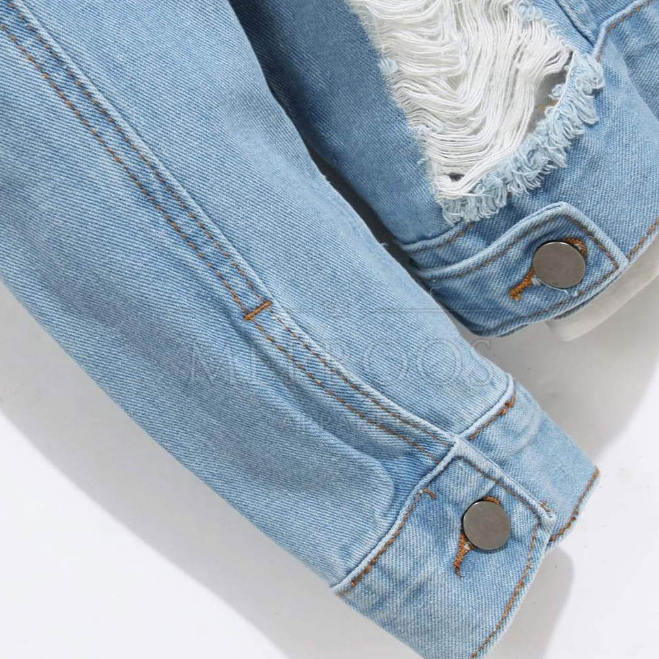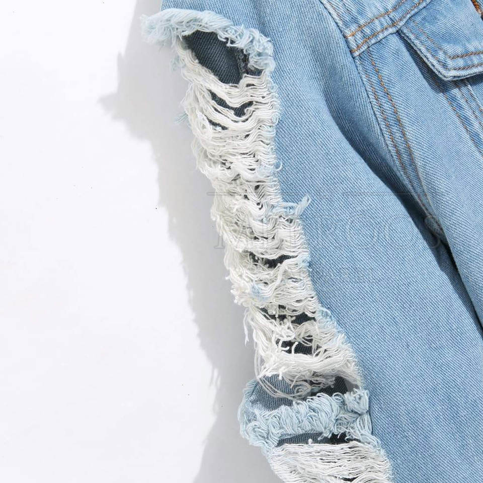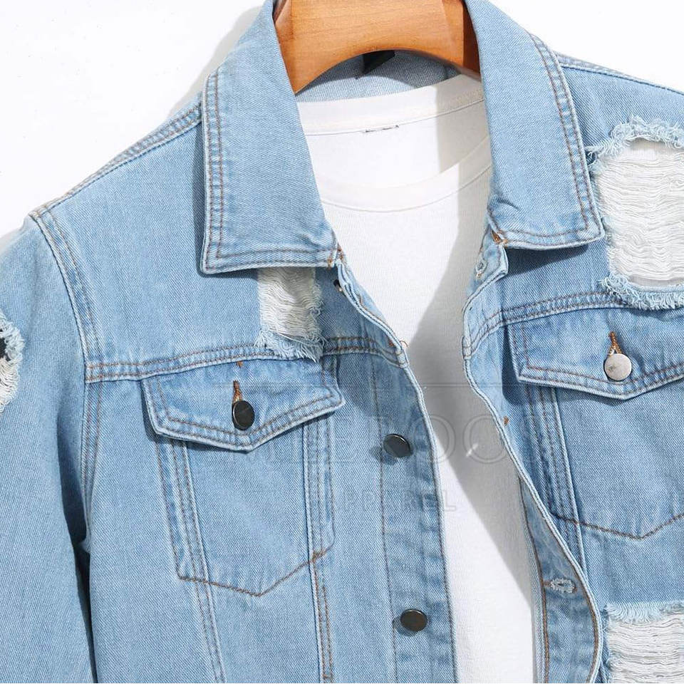 แจ็คเก็ตยีนส์ผู้ชายคุณภาพสูง สไตล์ลำลองแบบ Trucker ลุคขาดๆ ซักฟอกแล้ว สามารถปรับแต่งได้