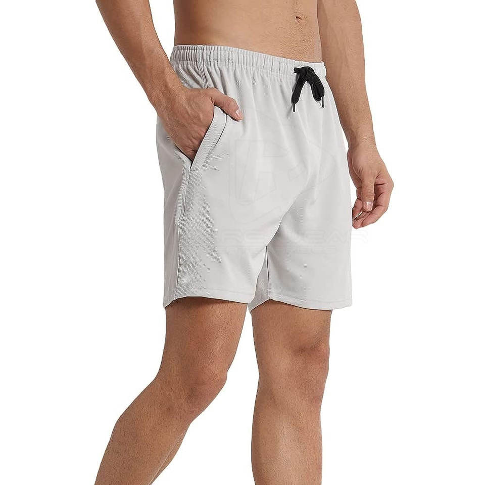 กางเกงขาสั้นฟิตเนสสำหรับผู้ชายกางเกงขาสั้นสำหรับออกกำลังกายทำจากปากีสถานเสื้อผ้าแนวสตรีทออกแบบโลโก้ได้ตามต้องการ