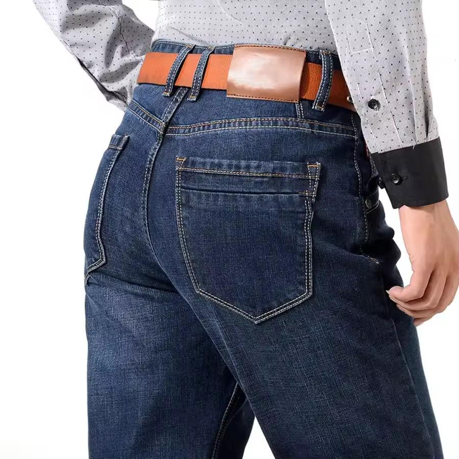 กางเกงยีนส์ผู้ชายคุณภาพสูง เอวกลาง ทรงตรง ขาตรง ผ้าสเตรช 100% ผ้าฝ้าย แห้งเร็ว ขายส่ง มีสินค้าในสต็อก