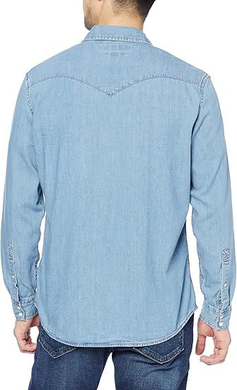 เสื้อเชิ้ตยีนส์ผู้ชายคุณภาพสูง แขนยาว กระเป๋าอกเดี่ยว ปกแหลม สไตล์ลำลอง สำหรับฤดูใบไม้ผลิและฤดูใบไม้ร่วง