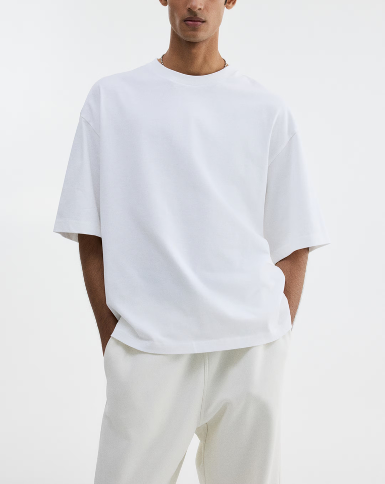 เสื้อยืดคอกลมทรงโอเวอร์ไซส์คุณภาพสูงสำหรับผู้ชาย ผ้าฝ้าย 100% เนื้อหนา ทรงบ็อกซี่