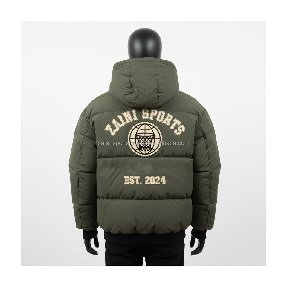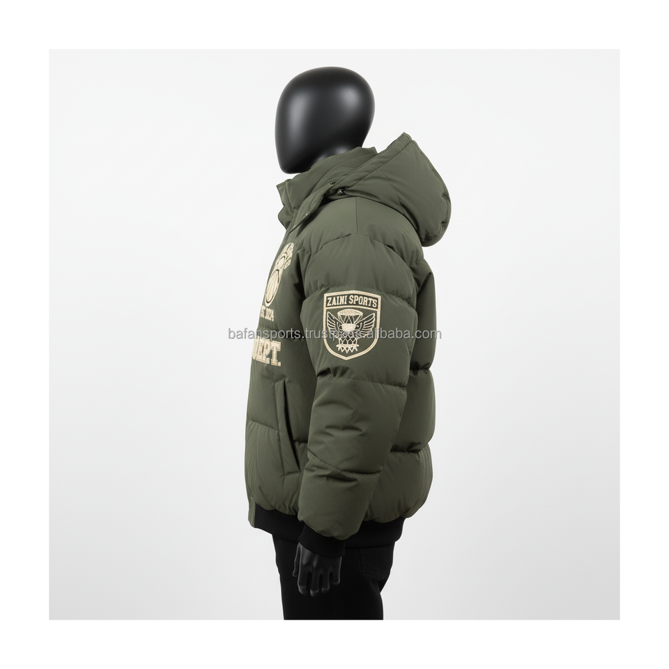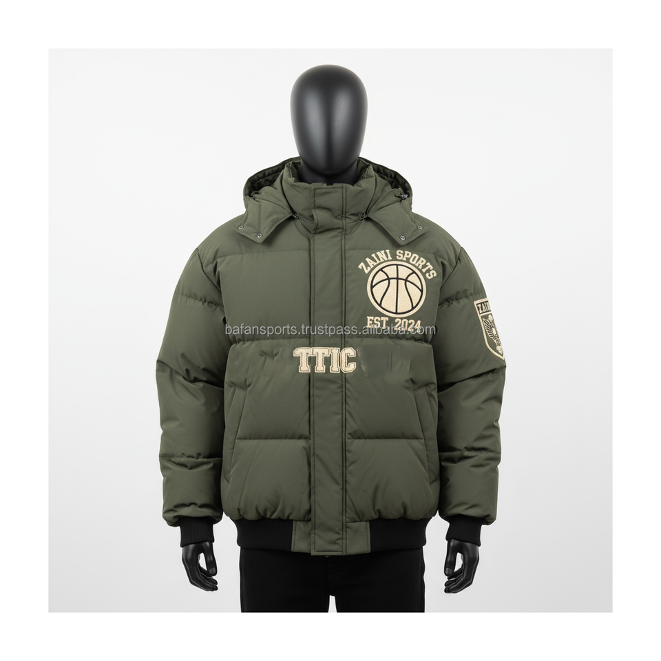 แจ็กเก็ตขนเป็ดสำหรับผู้ชาย380แกรมผ้าโพลีเอสเตอร์หนาสีเขียวมะกอกเสื้อแจ็กเก็ตมีฮู้ดอบอุ่นสำหรับผู้ชาย