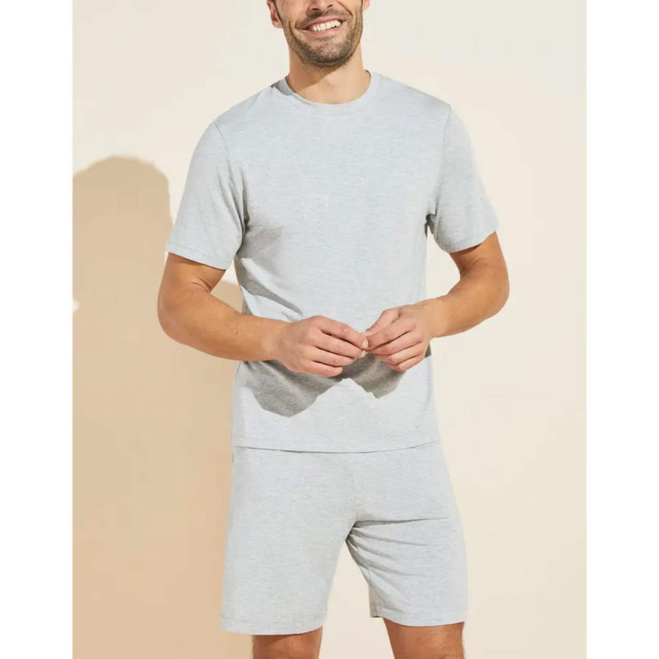 ชุดกางเกงขาสั้นสำหรับผู้ชายชุดกางเกงขาสั้นกีฬาฤดูร้อนสีตัดกันซักได้การออกแบบ OEM วิธีการทอ
