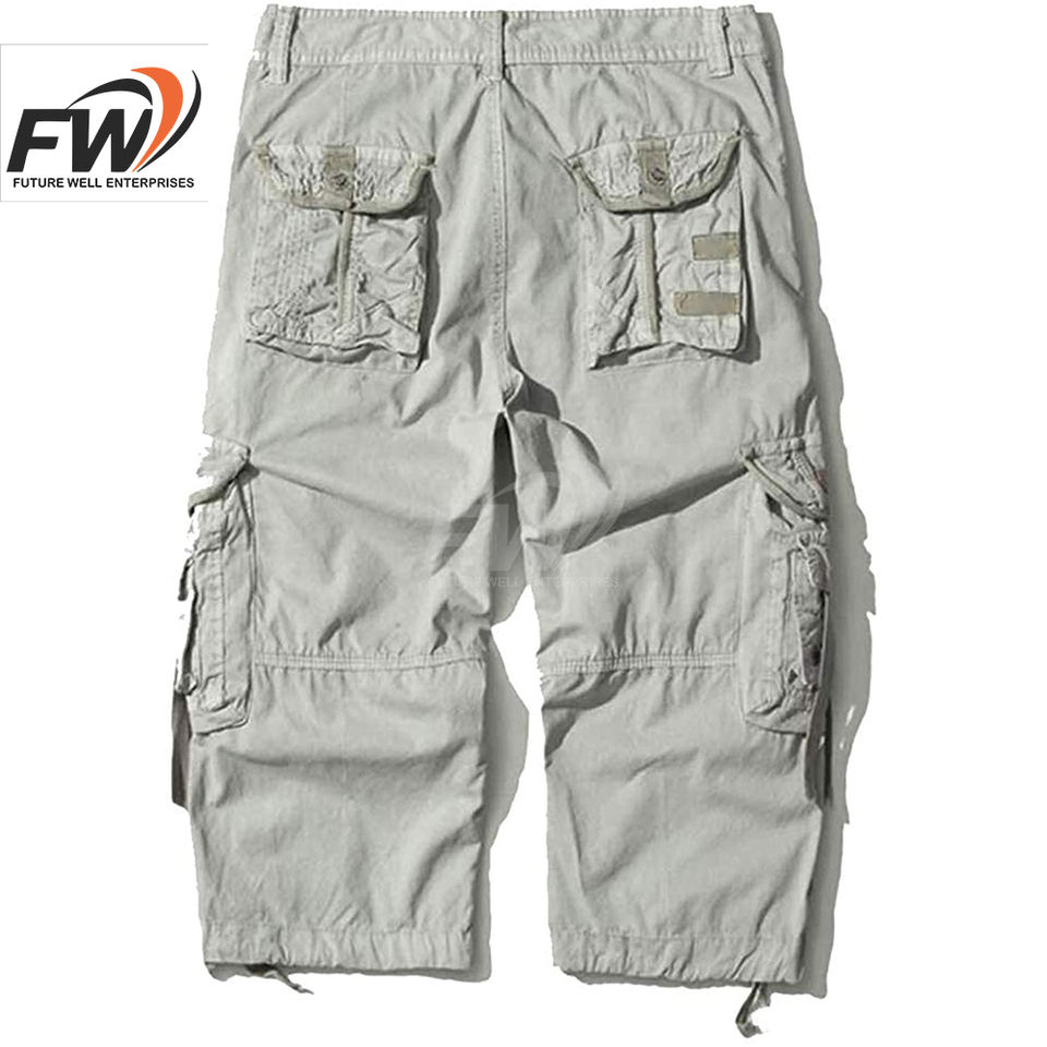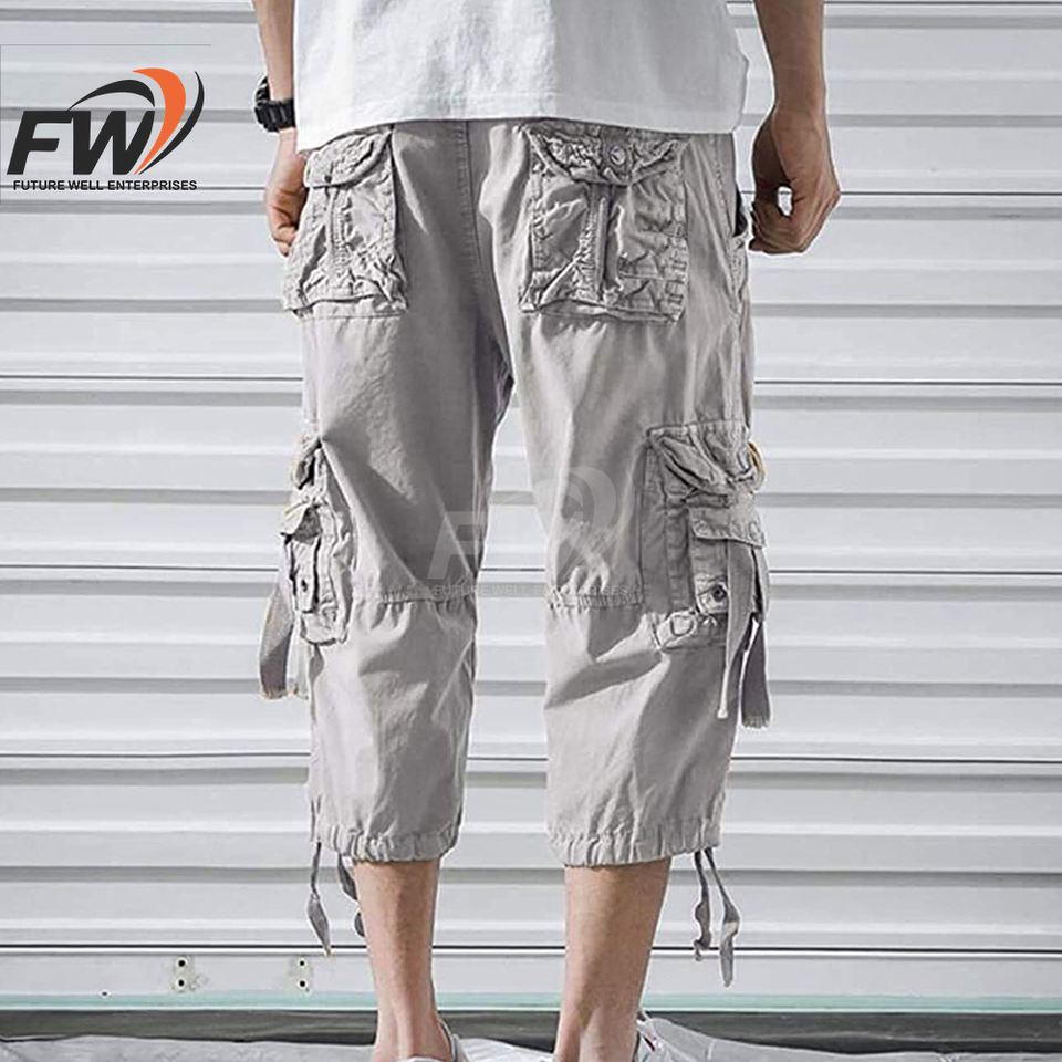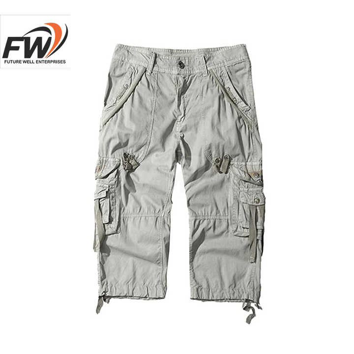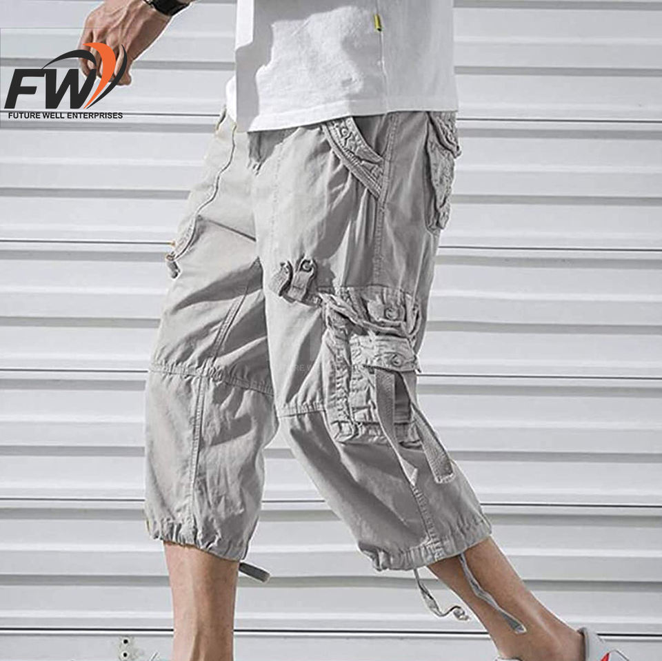 กางเกงขาสั้นคาร์โก้ผู้ชายคุณภาพสูง ป้องกันการยับ กระเป๋าข้างแบบเรียบ กางเกงขาสั้นเอวยางยืด ระบายอากาศได้ดี มีจำหน่ายแล้ว