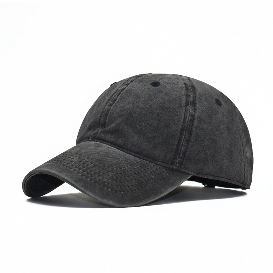 หมวกเบสบอลผ้าฝ้ายฟอกสีผู้ชายหมวกวินเทจสแนปแบคปรับได้หมวกแก๊ปกลางแจ้งหมวกคุณพ่อสีดำ
