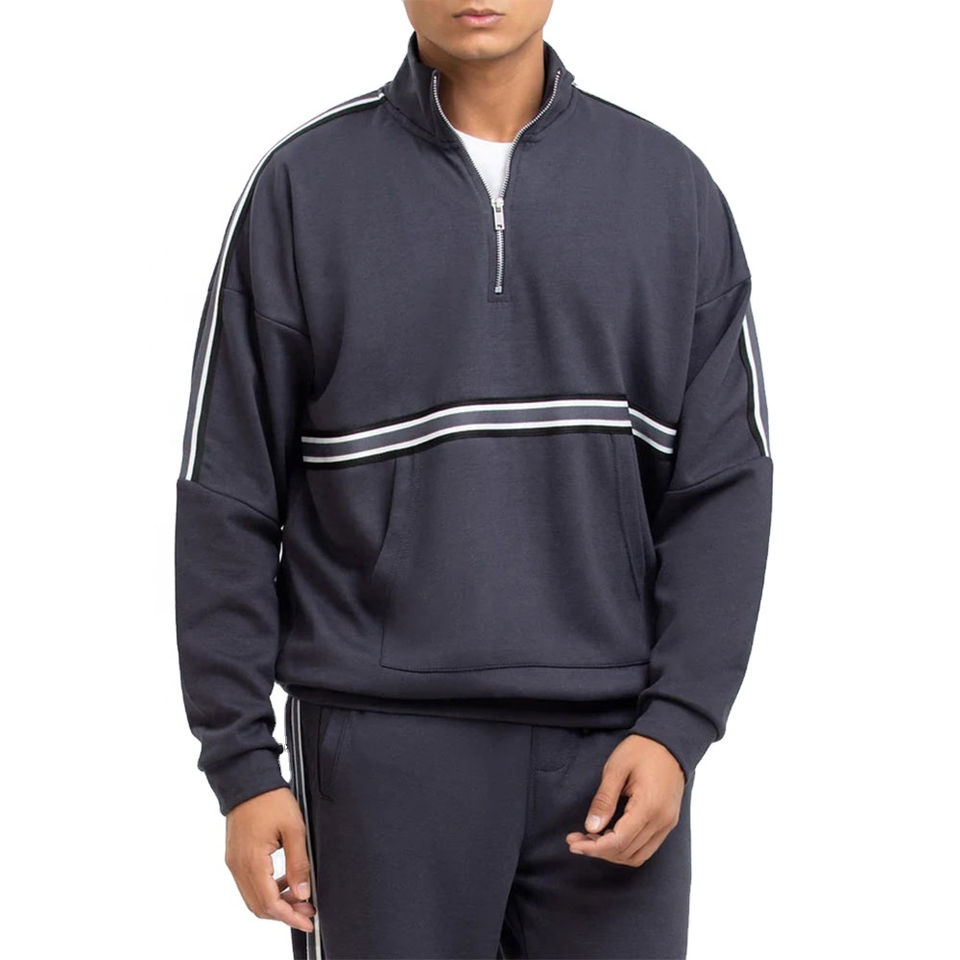 เสื้อสเวตเชิ้ตผู้ชายคุณภาพสูงแบบซิป OEM ชุดกีฬาแบบกำหนดเอง เสื้อผ้าลำลองสำหรับฤดูใบไม้ผลิ ชุดวอร์มแบบย้อมสีพื้น ปี 2026