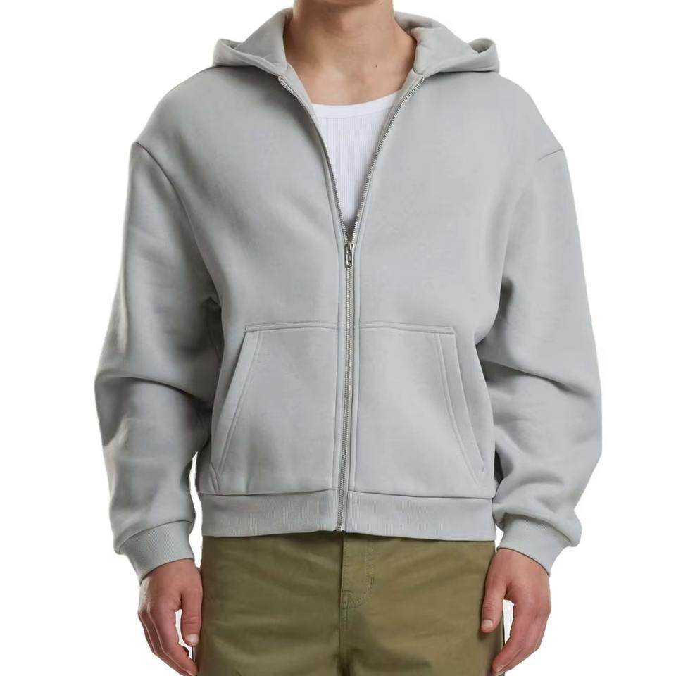 เสื้อฮู้ดซิปผู้ชายคุณภาพสูง แขนยาว ผ้าฝ้าย 100% ทรงโอเวอร์ไซส์ พร้อมโลโก้สั่งทำ ทรงหลวมไหล่ตก เสื้อฮู้ดซิปเรียบ