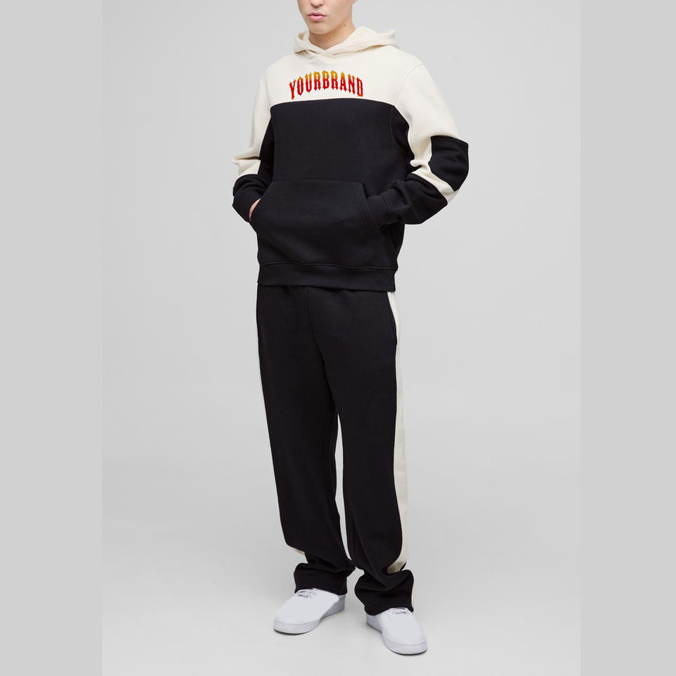 ชุดวอร์มผ้าฝ้าย100% 2ชิ้นสำหรับผู้ชายชุดวอร์มทรงถุงพิมพ์โลโก้2โทนสีตามสั่ง