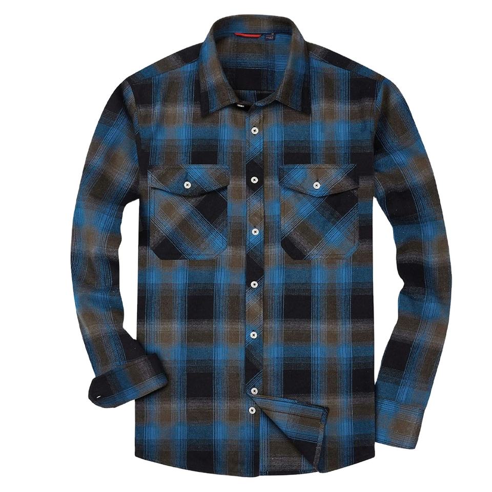 เสื้อเชิ้ตผู้ชายคุณภาพสูง ผ้าฝ้ายฟลานเนลลายสก็อต 100% สำหรับฤดูใบไม้ร่วง ป้องกันการยับ อุ่นสบาย แขนยาว สวมใส่สบาย กระดุมติด ทรงปกติ ผ้าไหม
