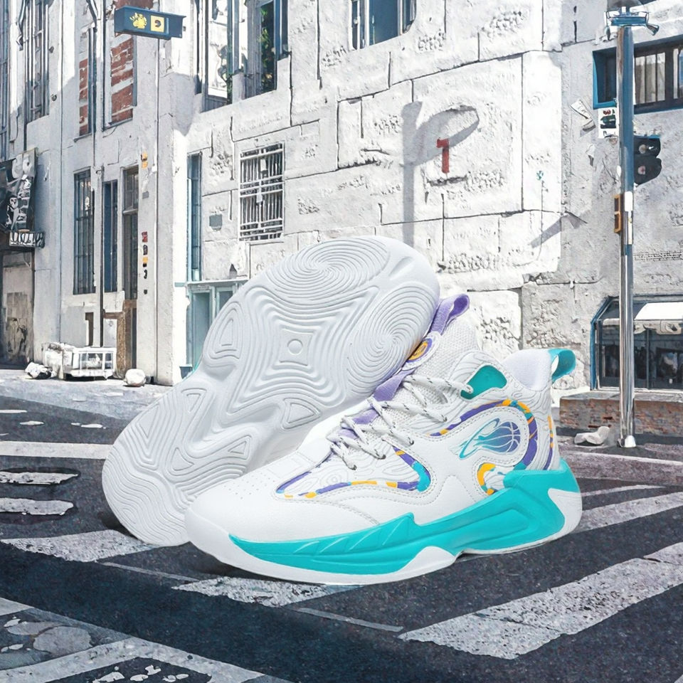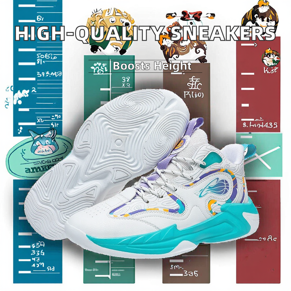 รองเท้าบาสเก็ตบอลผู้ชายคุณภาพสูง แบบผูกเชือก กันลื่น โลโก้แบรนด์สั่งทำได้ หนังไมโครไฟเบอร์ พื้นรองเท้า EVA ช่วยเพิ่มความสูง