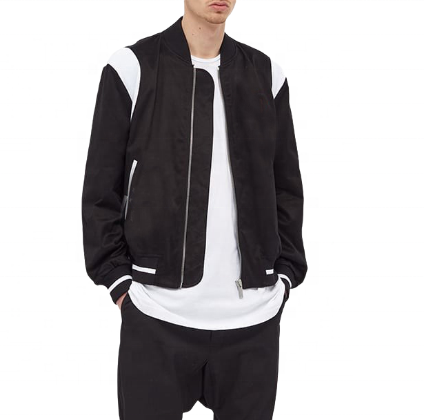 แจ็คเก็ตบอมเบอร์ผู้ชายคุณภาพสูง สีดำ สไตล์นักบินลำลอง ปิดซิป เสื้อคอวี แขนสั้น สไตล์เบสบอลสำหรับผู้ชาย