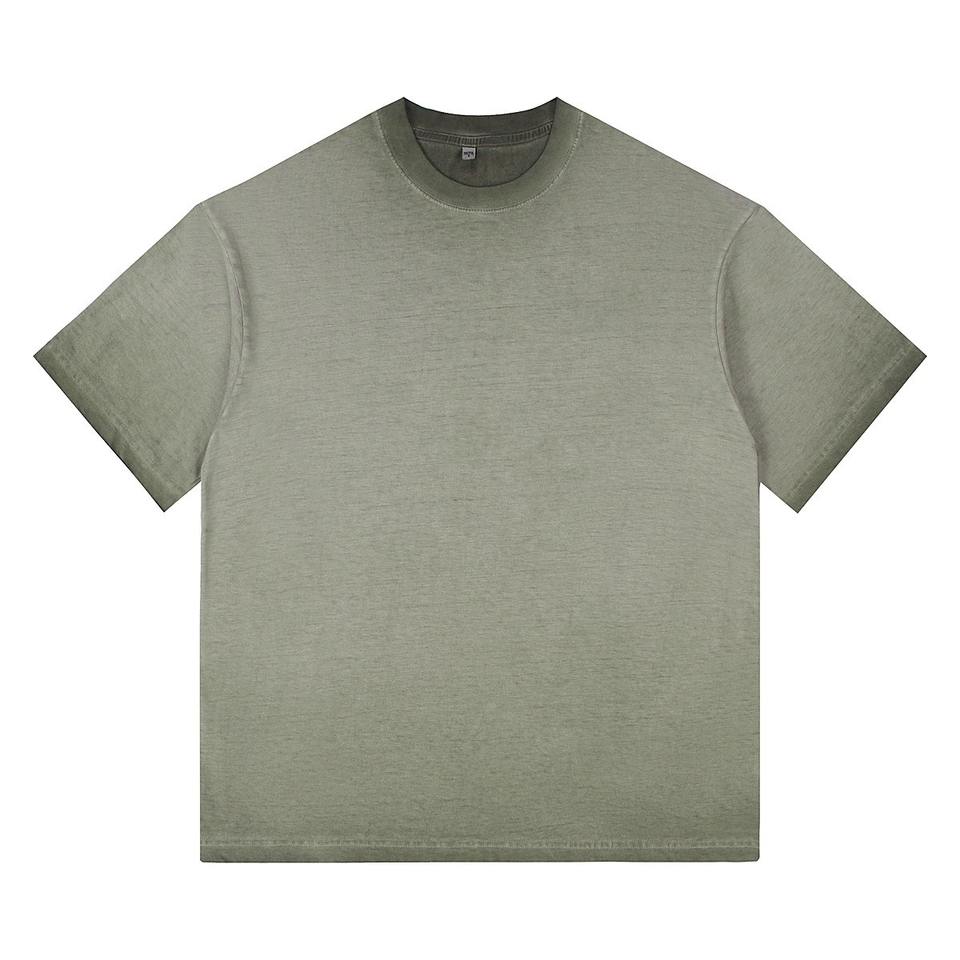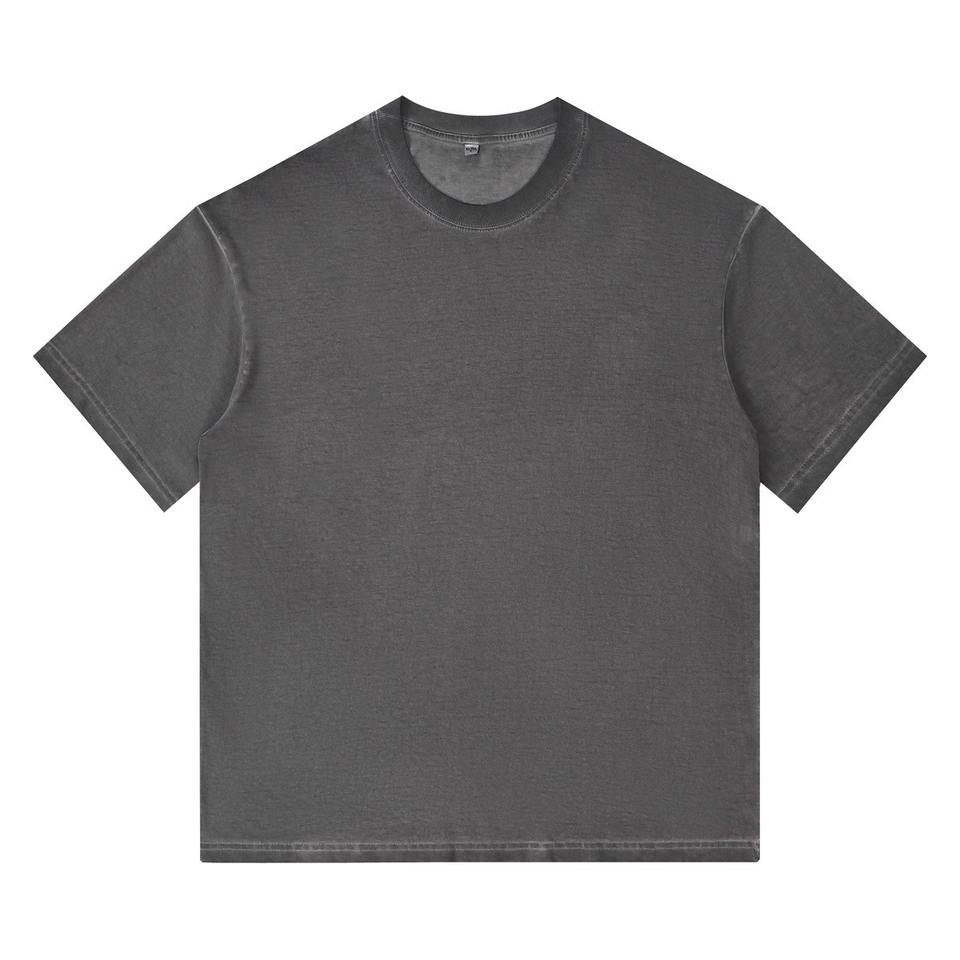 เสื้อยืดคอกลมทรงหลวมสไตล์วินเทจผ้าฝ้าย 100% คุณภาพสูงสำหรับผู้ชาย ล้างสีแบบแอซิดวอช ไหล่ตก มีไซส์พลัสไซส์ให้เลือก