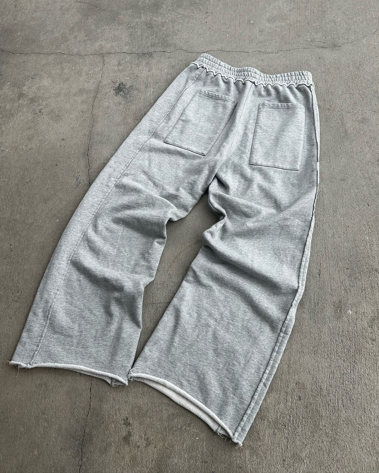กางเกงลำลองผู้ชายคุณภาพสูง ทรงหลวม ผ้าโพลีเอสเตอร์/คอตตอน เฟรนช์เทอร์รี่ ปักโลโก้ตามสั่ง ตะเข็บเย็บแบบดิสเทรสที่ชายกางเกง