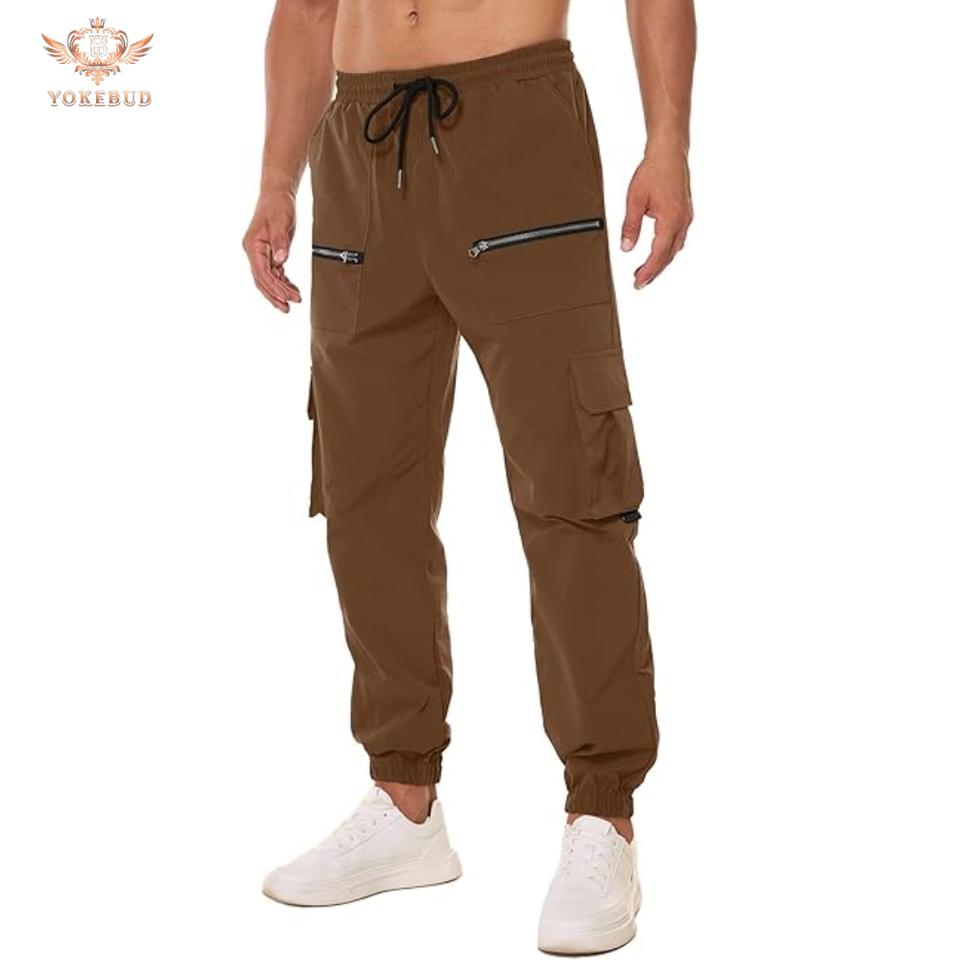 กางเกงคาร์โก้ลำลองผู้ชายคุณภาพสูง เอวยางยืด ซิปหน้า ทรงจ็อกเกอร์ ขาตรงทรงสอบ กระเป๋าหลายช่อง ไซส์ใหญ่ แห้งเร็ว