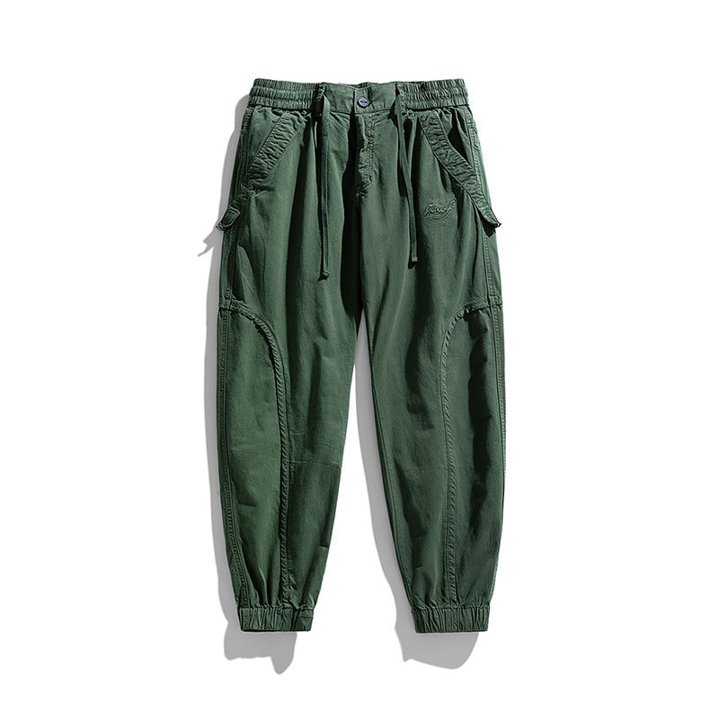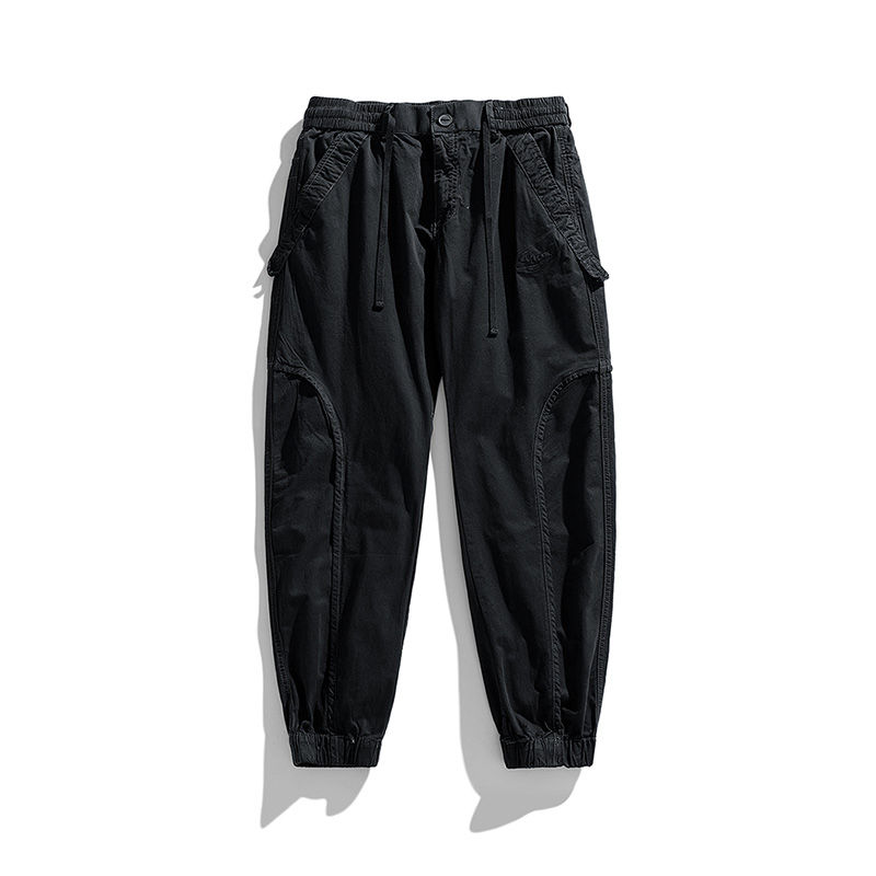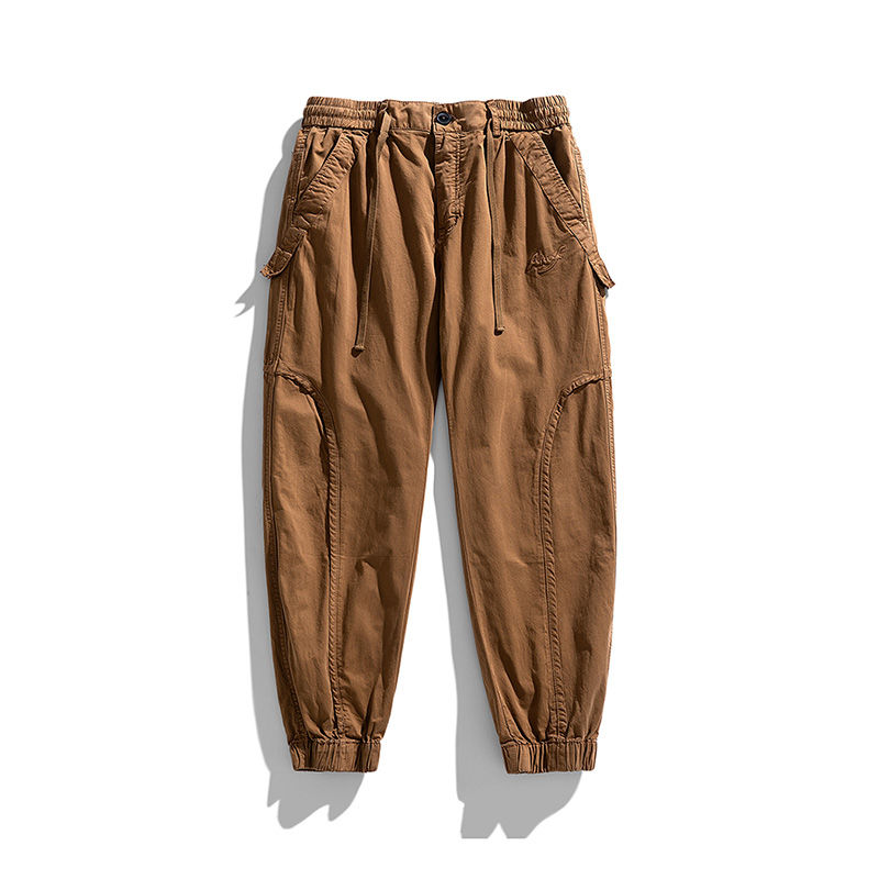 กางเกงขายาวลำลองผู้ชายคุณภาพสูง ผ้าคอร์ดูรอย กันยับ เอวยางยืด ทรงหลวม ขาตรง