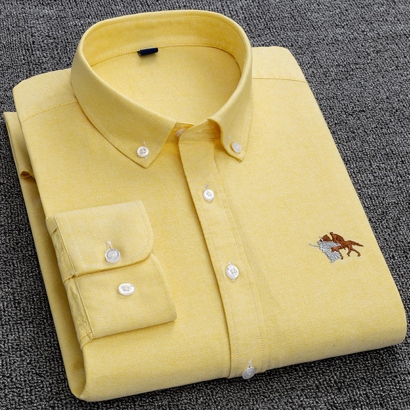 เสื้อเชิ้ตลำลองผู้ชายผ้าฝ้ายแขนยาวใส่สบายกันรอยยับ