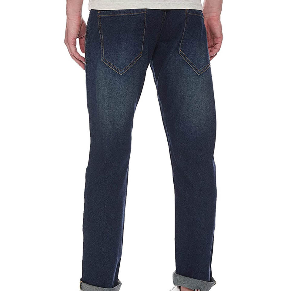 กางเกงยีนส์ชายทรงตรงเอวปานกลางน้ำหนักเบาสีทึบกางเกงลำลองสำหรับผู้ใหญ่