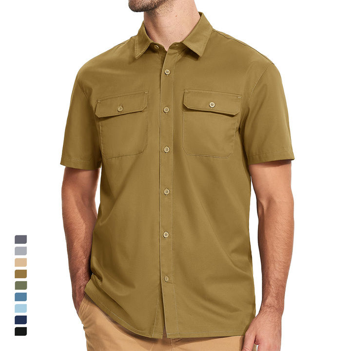 เสื้อเชิ้ตผู้ชายคุณภาพสูง แห้งเร็ว สไตล์ลำลอง ผ้าคอตตอนผสมโพลีเอสเตอร์ พร้อมปักลายตามสั่ง ดีไซน์ใหม่แบบเรียบง่าย เหมาะสำหรับเล่นกีฬาและกิจกรรมกลางแจ้ง