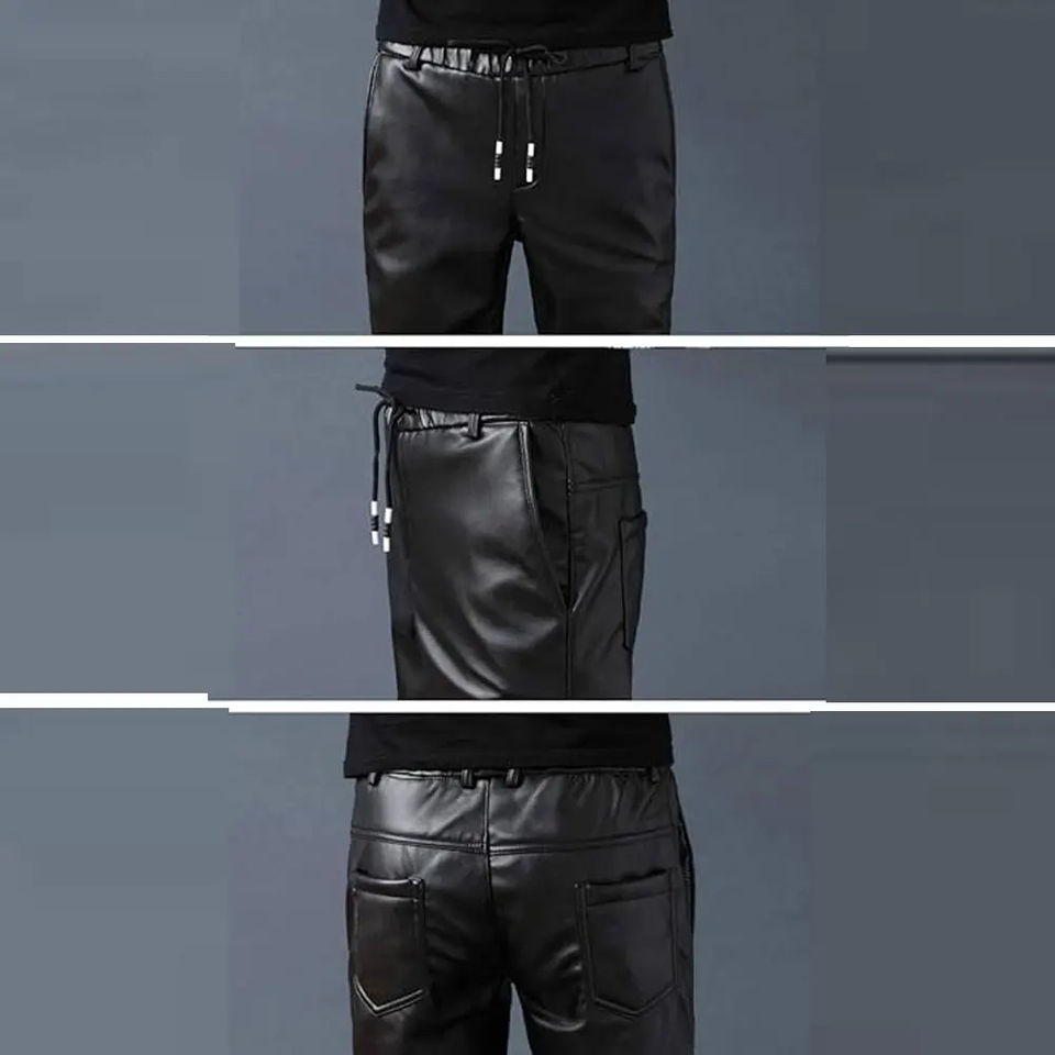 กางเกงหนังแท้สีพื้นคุณภาพสูงสำหรับผู้ชาย สไตล์ลำลอง สตรีทแวร์ขายดี พร้อมโลโก้สั่งทำพิเศษสำหรับนักขี่มอเตอร์ไซค์และชุดลำลอง
