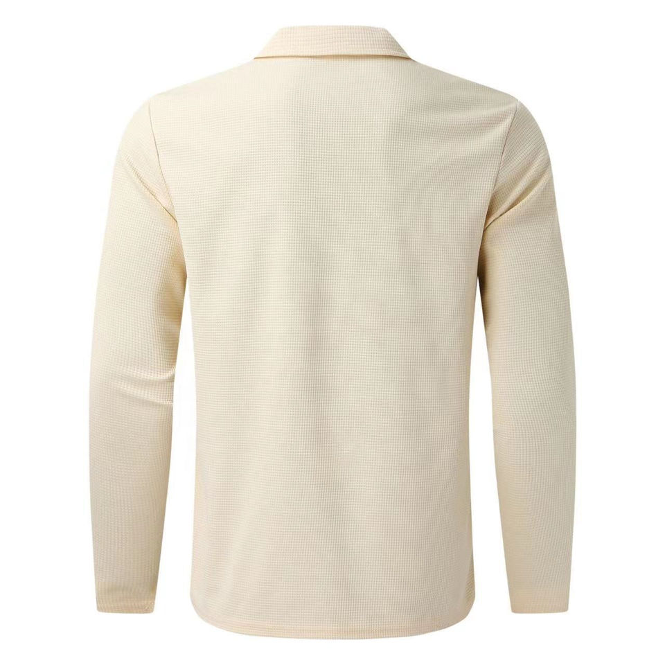 เสื้อโปโลแขนยาวคุณภาพสูงสำหรับผู้ชาย ปกคอพับได้ ป้องกันรังสียูวี ผ้าฟลีซ พร้อมกางเกงขายาวรัดเชือก ชุดลำลองสองชิ้นสีพื้น